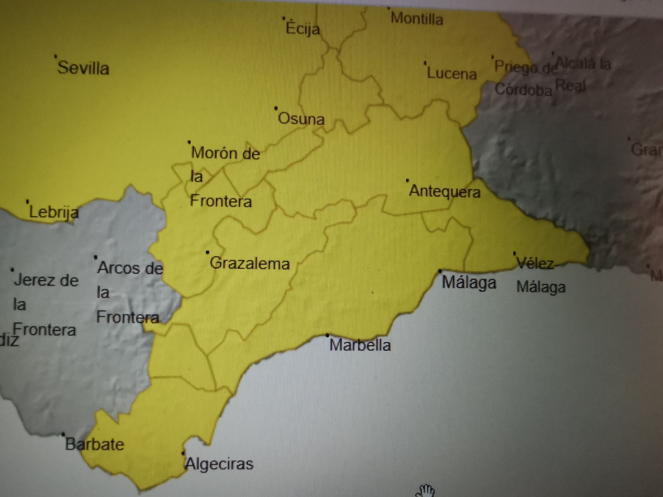 «Se esperan precipitaciones acumuladas en una hora de 20 litros en Costa del Sol y Guadalhorce, Axarquía, Antequera y Ronda. Y de hasta 40 litros en 12 horas en la Costa del Sol, Guadalhorce y Axarquía»