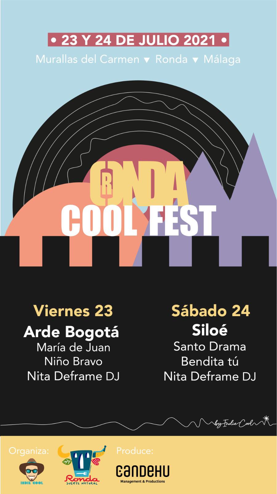 En cuanto a los artistas que conforman el primer ‘Ronda Cool Fest’, como cabezas de cartel estarán ‘Arde Bogotá’ y ‘Siloé’, dos de los máximos exponentes de este movimiento musical y consolidados en el panorama indie. De hecho ‘Arde Bogotá’ está a punto de sacar disco que presentará en Ronda dentro de su gira. El plantel se completa con grupos y artistas andaluces como ‘Santo Drama’, María de Juan y Niño Bravo o los granadinos ‘Bendita tú’. A ellos se unirá la dj ‘Nita Deframe’ que mezcla en sus sesiones la música indie y electrónica.