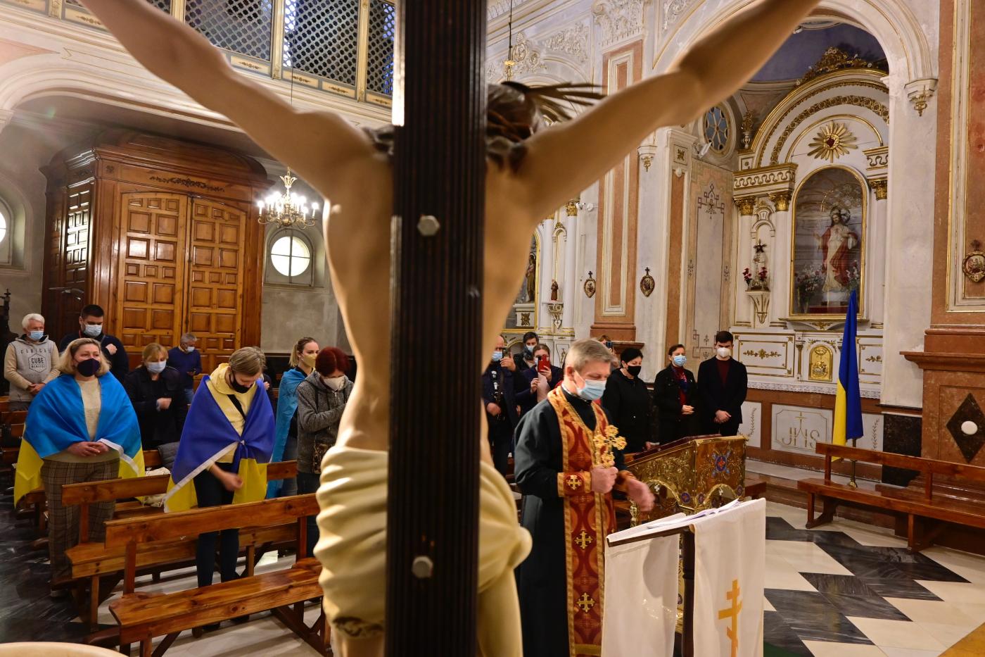 Entre lágrimas de preocupación e indignacion por el ataque de Rusia a Ucrania tras la operación militar llevada a cabo esta madrugada contra ese país, ucranianos residentes en España se han unido este jueves en una iglesia de Málaga para implorar por la paz.