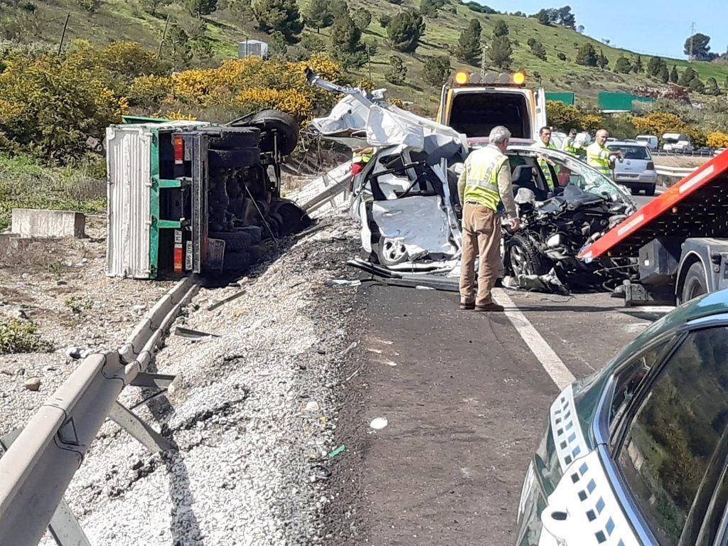 Un fallecido y dos heridos en un accidente de tráfico entre un camión y dos turismos en Pizarra
