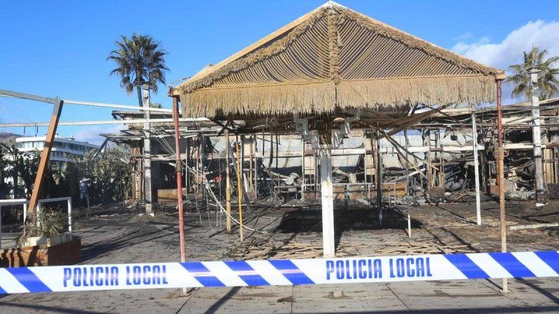El chiringuito, completamente destrozado por las llamas, se ha quemado en su totalidad y ha quedado siniestro. La plataforma exterior era de madera y forraje y la estructura de PVC y hierro, mientras que la mayor parte del mobiliario de interior y decoración era de material inflamable.