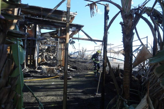 El local ha quedado siniestro, ya que la plataforma exterior era de madera y forraje, la estructura de hierro y PVP y la mayor parte del mobiliario y decoración era de material inflamable.
