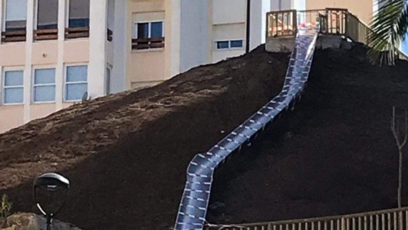 En Estepona, 38 metros de longitud que salvan un desnivel entre dos calles con una pronunciada pendiente. Los primeros usuarios han salido contusionados y lesionados de la experiencia. Ante esta situación, el ayuntamiento ha prohibido su uso