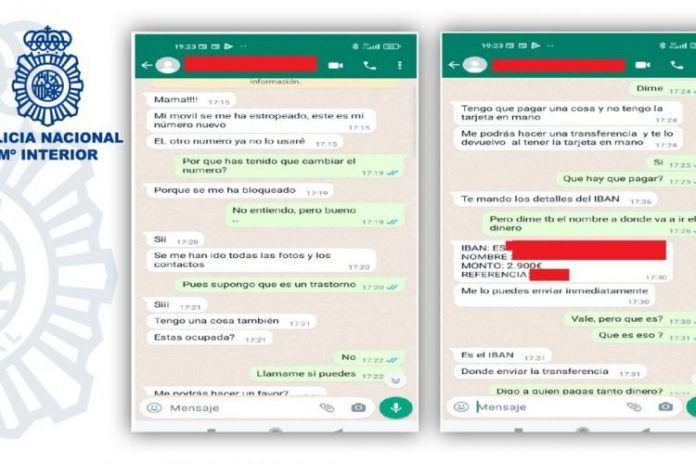 La Policía Nacional ha detectado una nueva modalidad de estafa cometida a través de WhatsApp, en la que los estafadores contactan con mujeres y las engañan haciéndose pasar pro sus hijos para solicitarles de manera urgente dinero, con el fin de hacer frente a un problema inmediato. Para lograr el engaño, dicen que no pueden comunicarse directamente a través de su teléfono habitual debido a supuestos problemas con su terminal y que no pueden recibir llamadas.