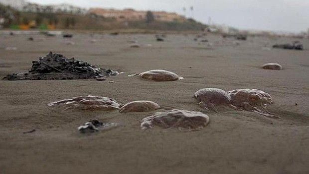 Los invertebrados comenzaron a aparecer a mediados de semana en varios puntos del litoral, donde permanecerán mientras dure el viento de levante