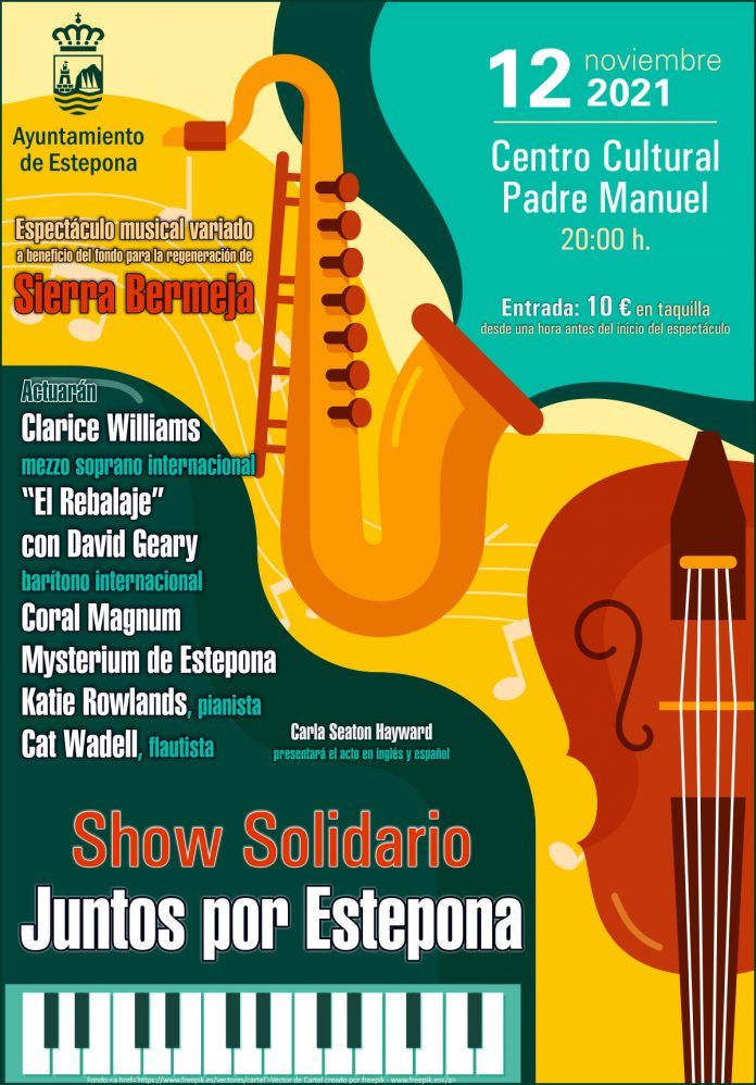 El Ayuntamiento de Estepona informa que este viernes, 12 de noviembre, a las 20:00 horas, tendrá lugar en el Centro Cultural Padre Manuel la celebración del espectáculo solidario ‘Juntos por Estepona’, que recaudará fondos para la regeneración de Sierra Bermeja.
